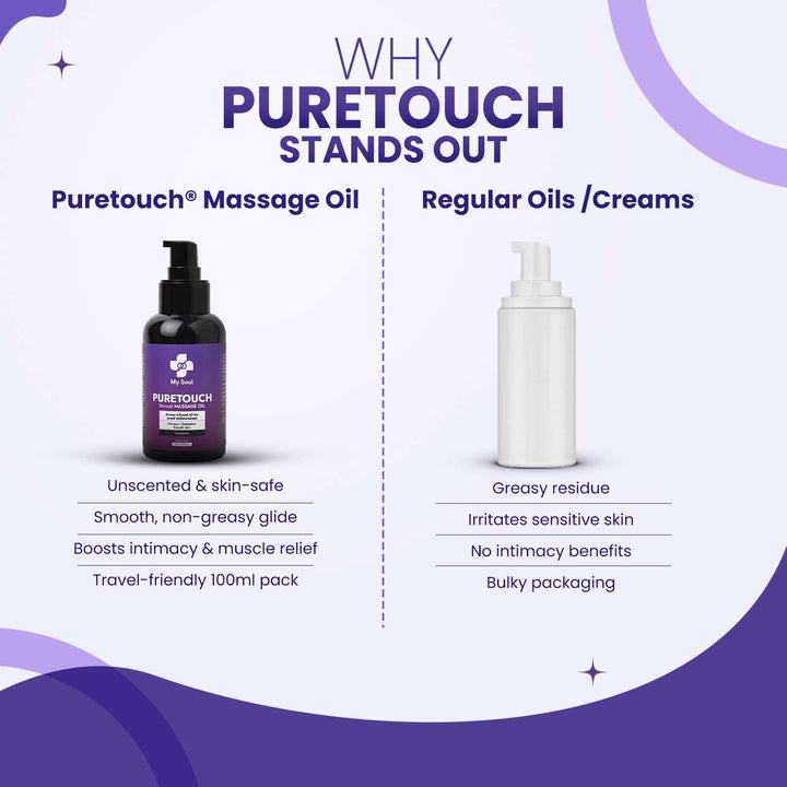 PureTouch – Unscented Massage Oil for Couples – Skin-Friendly & Ideal for Sensitive Use – Fragrance-Free – 100ml